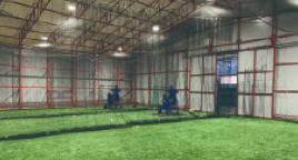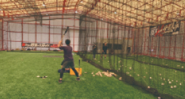 スタジアムは全長30m、人工芝やスラッガー製マシンを備え、効率的な練習をサポートします。